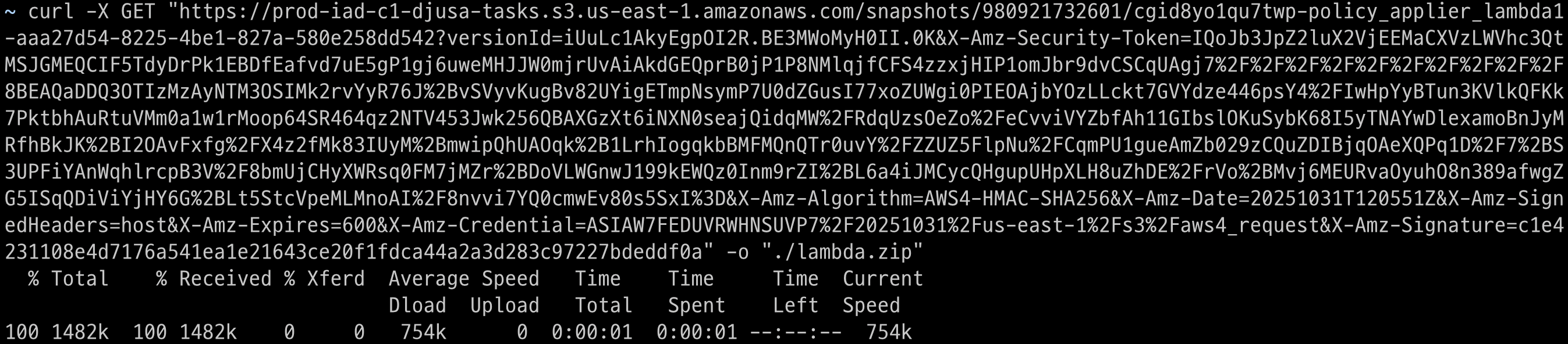 이 URL은 객체 소유자만 접근할 수 있는 S3 객체에 접근할 수 있도록 하는 서명값이 포함되어, S3에 업로드된 Lambda 코드에 접근을 가능하게 해 준다.