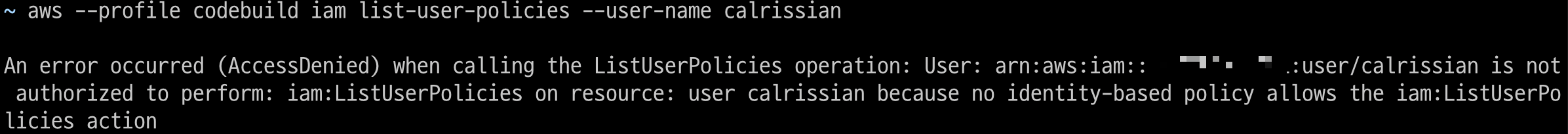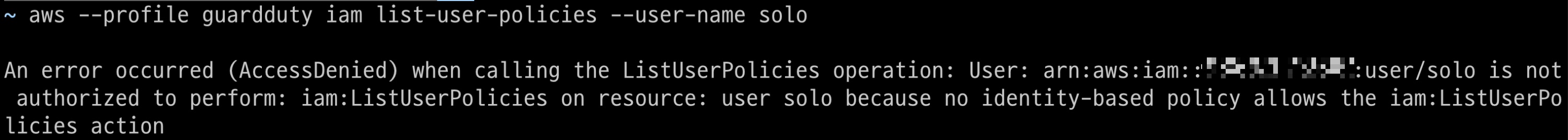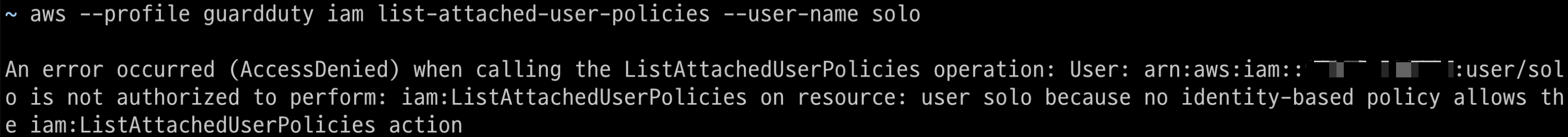 list-groups-for-user, list-attached-user-policies, list-user-policies, list-roles 명령을 통해 Group, Policy, Role 등을 조회해보았지만 모두 권한이 존재하지 않아 User의 정확한 권한을 확인할 수 없었다.