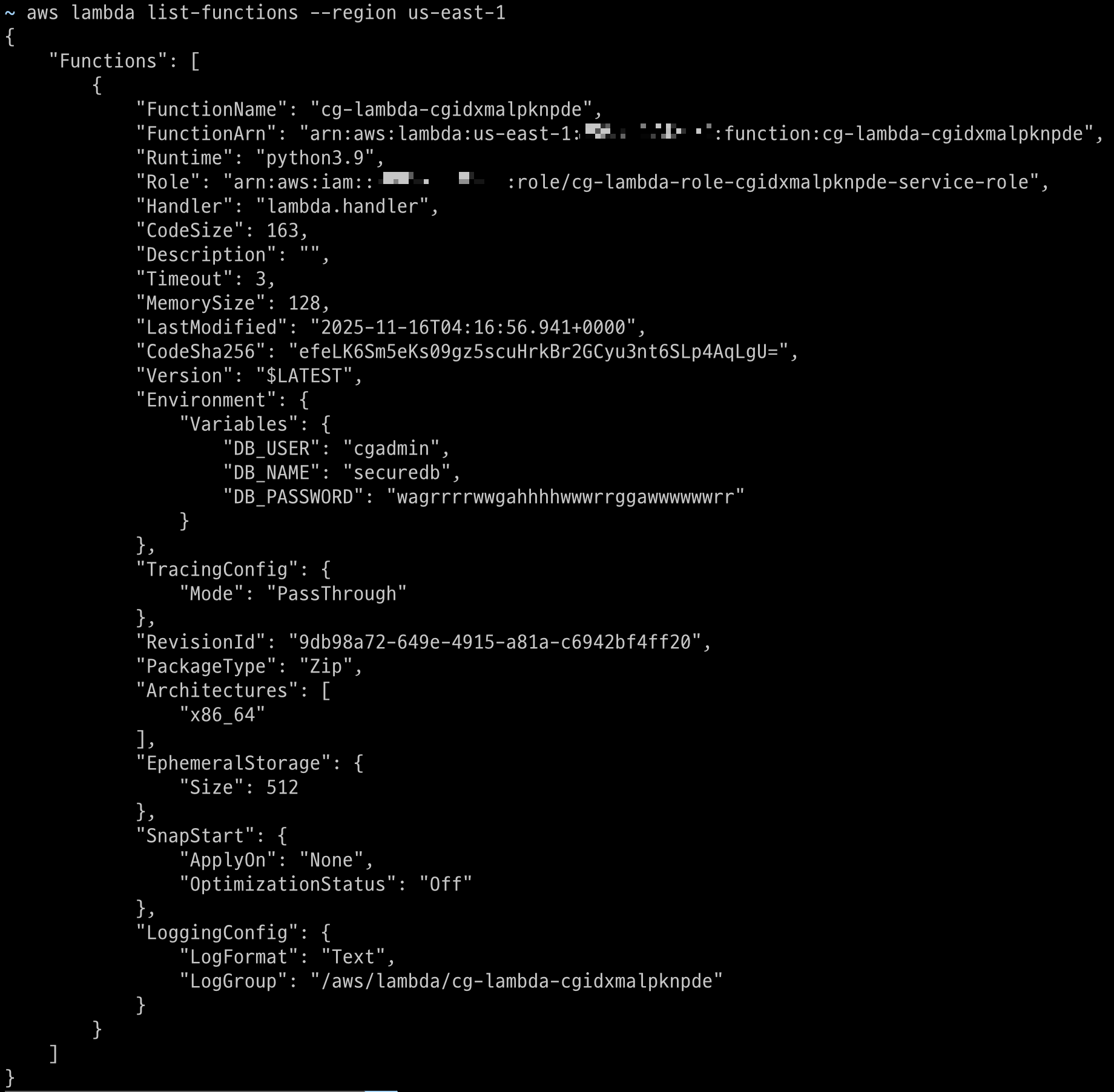 Lambda에 대한 권한이 존재하기에 list-functions 명령을 통해 Lambda 함수를 조회하였다.