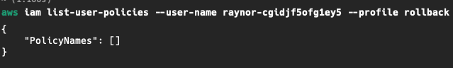 제공받은 Access Key에 대한 정보를 알았으니 iam user, policy, role등을 확인하여 활용할 수 있는 권한이 무엇인지 확인한다. raynor을 제외한 또 다른 user가 있는지, 그리고 각 user에 할당된 policy에는 어떤 것이 있는지 확인해보자. 먼저 list-users 명령을 통해 user list를 확인해보면, 다른 user는 확인되지 않는다.
