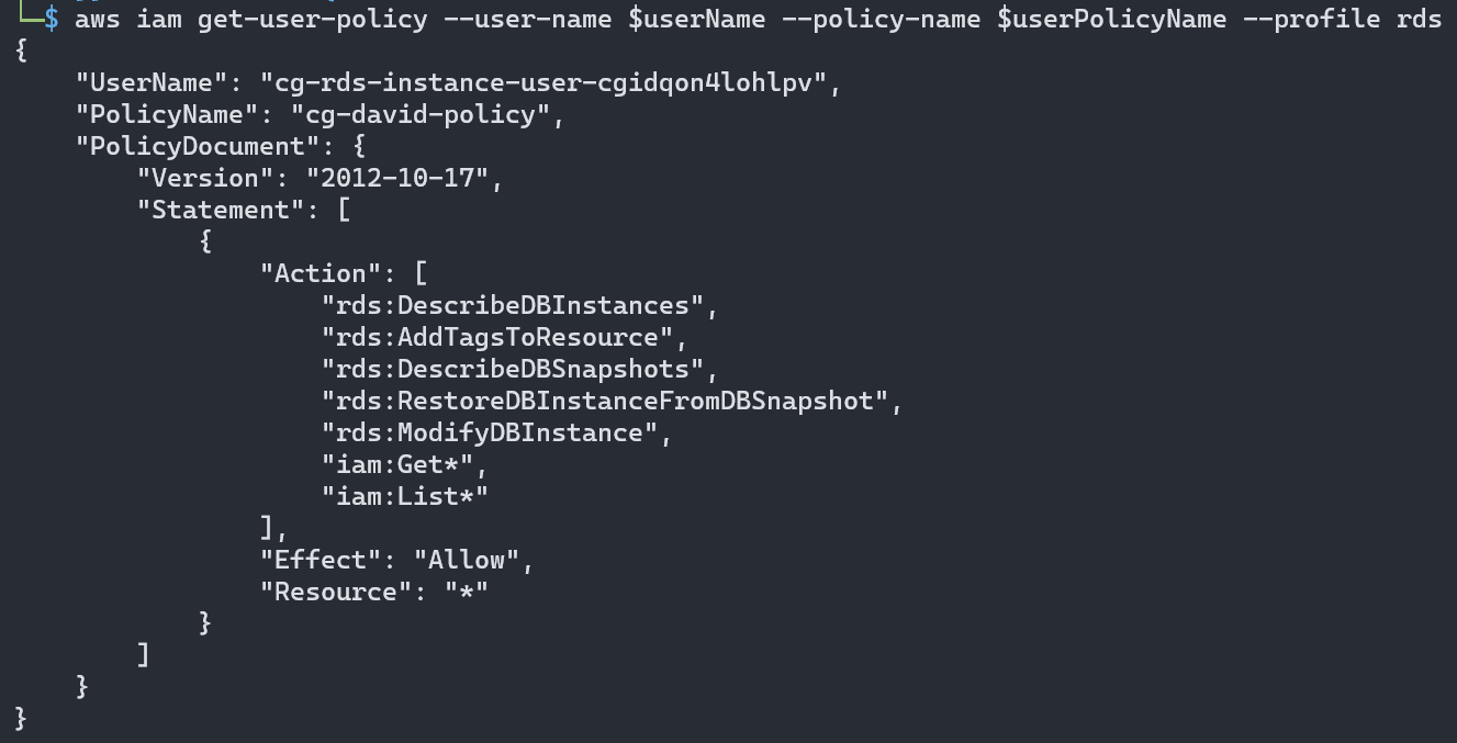 ※ export userPolicyName=cg-david-policy