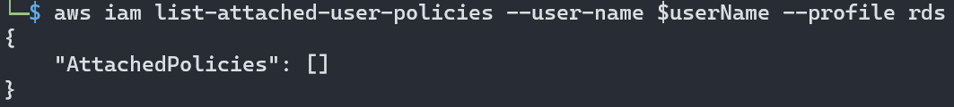 1. aws sts get-caller-identity --profile rds 명령어로 해당 유저의 정보를 확인했다.